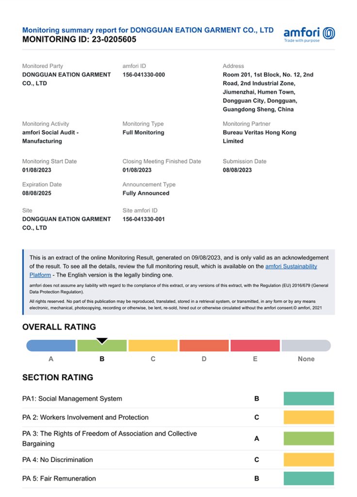 For your brand, this means more confidence in working with manufacturers who respect employee rights and provide a safe and fair working environment, which helps us build a responsible supply chain together.