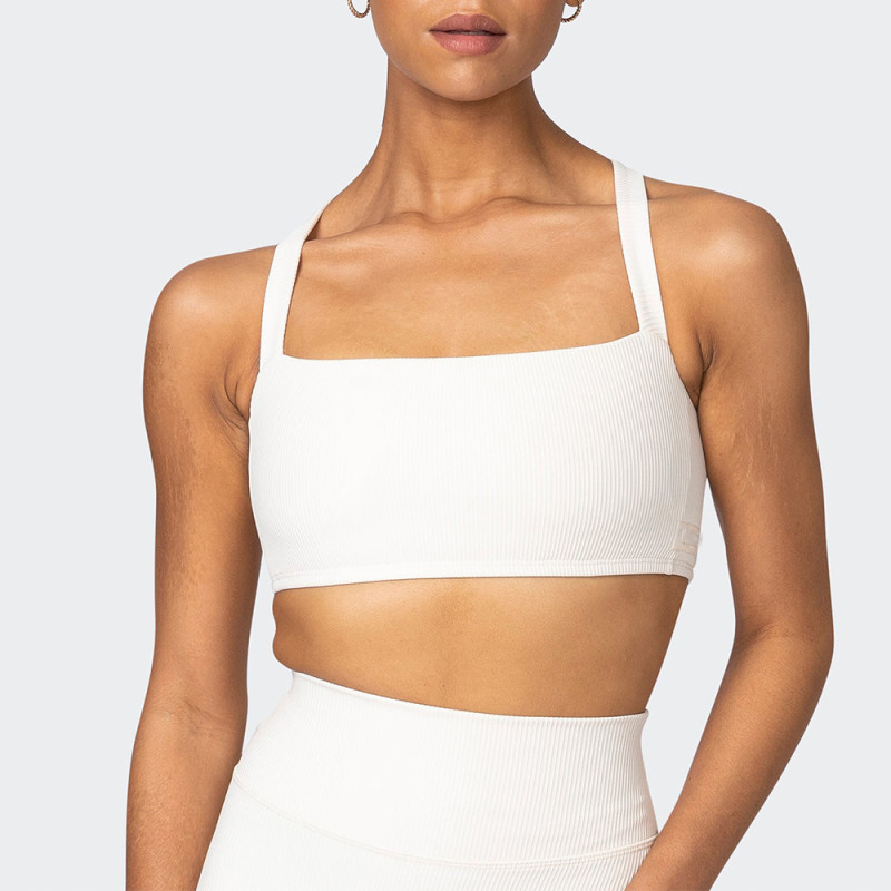 Compression Ribbed Sports Bra supplier | Custom Cross Back Ladies Nylon Spandex Sports Bra Vendor