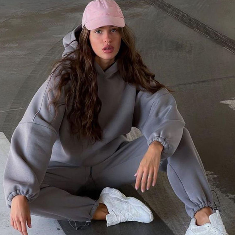 2 piece oversize tracksuit Supplier | Custom custom logo comfy blank sweatsuit set women Supplier