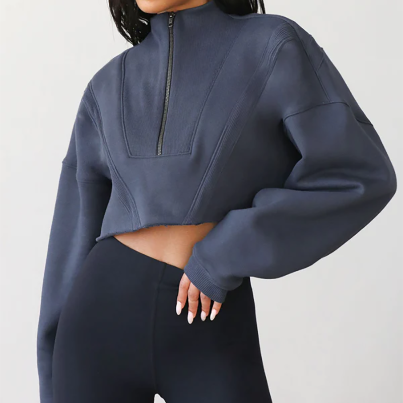 Bulk Custom Women Hoodie ManufacturerCustom half zipper Sweatshirt Manufacturer | Custom women ribbed trimmed cropped Sweatshirt
