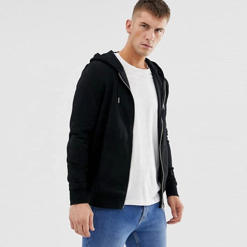 Custom Zip Up Hoodies Men manufacturer | warm 100% Cotton Plain Black hoodie manufacturer