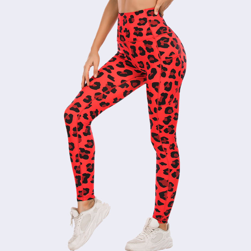 Adorned with a bold leopard print pattern, adding a touch of wild style and personality to the leggings.