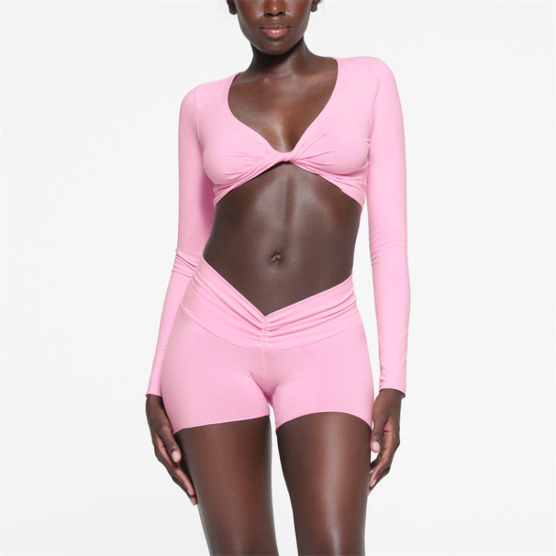 long sleeve yoga set Manufacturer | Custom front twist cropped tops 2 piece sports wear Supplier