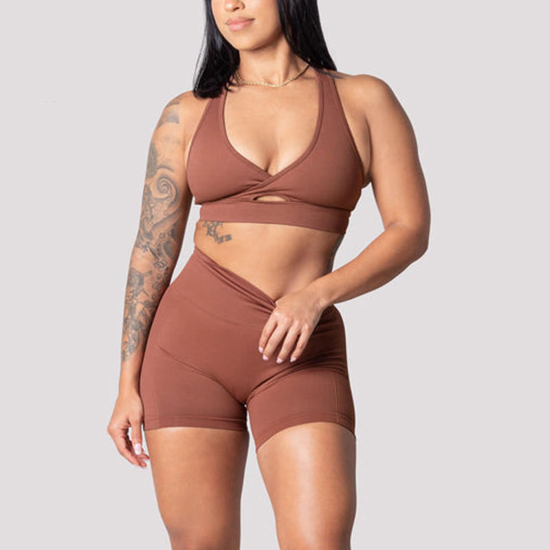 Racerback Sports Bra Exercise Shorts Set Manufacturer | 2 Piece Racerback Sports Bra Exercise Shorts Set Factory